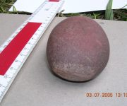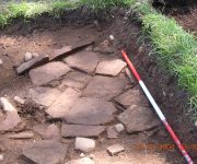 Briefly, in 2002 I interested the Edinburgh Archaeological Field Society – a voluntary organisation – in the site. Excavations and a survey of the site were carried out over a period of five years, although each year access to the site was restricted to a fairly short season of about four months to allow the local gamekeeper to use the area for raising pheasants. There was little left of the actual circle, probably due to robbing of the stones for agricultural purposes. During excavation a number of separate areas of flat stones were uncovered, carefully placed to form what some considered to be hearths. Under these were found signs of what have been described as cremations with fragments of bone which have not been analysed. There were also two small hand grinding stones with a resinous type substance found in the grinding surface. Unfortunately, EAFS is a voluntary organisation with limited resources. Consequently analysis of the finds has not revealed as much as it might have. A date of around 300BC has been put on some of the material found.