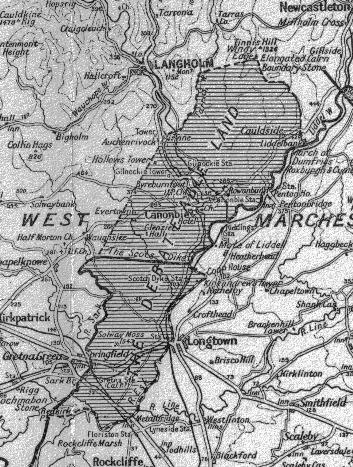 The Debatable Land was a narrow strip of land stretching north from the Solway about 4 miles wide and 12 miles long. Its history dates from the aftermath of Bannockburn –1314 – when scores were settled and rewards given for being on the winning side. Robert Bruce, King of Scots, declared John de Wake, an English nobleman’s Barony of Kirkandrews in Scotland forfeit and granted it to John de Soulis a Scottish supporter of Bruce. In 1320 Soulis was implicated in a conspiracy against Bruce and Kirkandrews was granted to Sir Archibald Douglas.