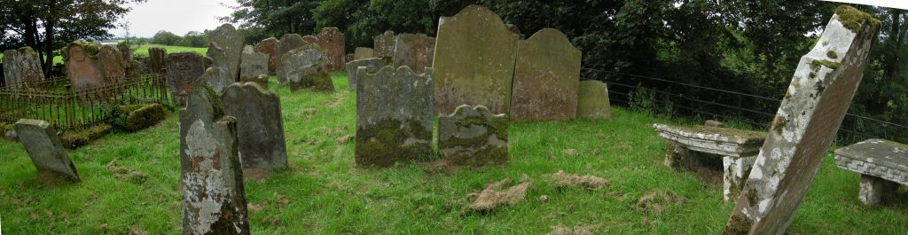 A short drive from Canonbie in Dumfriesshire, through quiet and pleasant farmland takes you to the ancient graveyard known as Half Morton or Tower of Sark. At the end of a grass track, the graveyard is surrounded by trees and sits on a high banking above the river Sark. The inscriptions on gravestones are nearly all two hundred or more years old. Scots poet and author George Mackay Brown described a kirkyard as “That strange peaceful book with stone pages that tells the history of a community”. If that is true then Harknesses played an important part in the history of this area – for three hundred years one of the most notorious, lawless and violent places in Europe – the Debatable Land.
